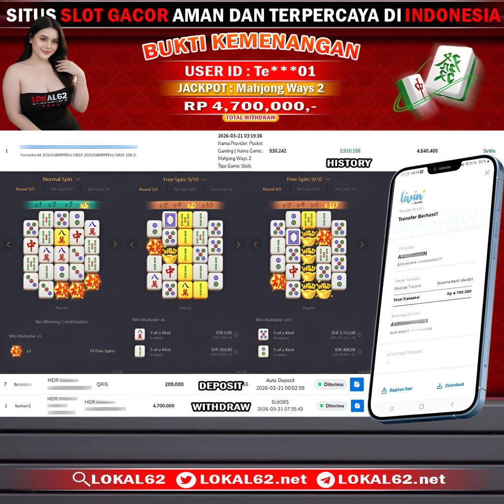Dimana Lagi Anda Dapat Situs Slot Online Sekarang Yang Terpercaya Seperti Lokal62 ? Kemenangan Member Di Proses Tanpa Bertele-tele, Jadi Tidak Perlu Anda Khawatir Pada Agen Situs Bandar Bola, Bandar Togel, Live Casino Seperti Lokal62. Karena Kemenangan Besar Berapapun Akan Di Bayar Lunas Kepada Member.